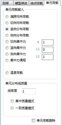 (1)选项“q”,选择该项时,系统默认荷载模式为均布荷载。对于集中力将自动转化为q[长度符号],力偶作用则将自动转化为q