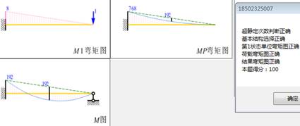 对“单学生&单习题”评阅时,可在右上模型框中,察看原模型图、学生作业中提交的内力图等图形信息。同时提供正确内力图的形状作比对。