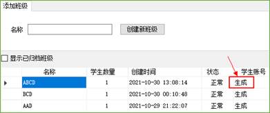 在下图所示位置红框位置单击,可生成主讲老师在“本教学班”的学生帐号。